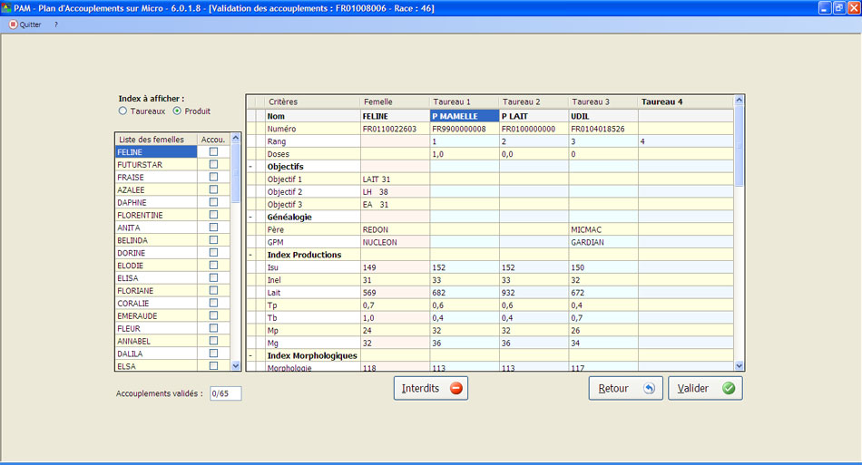 Après avoir établi la liste et le stock de semences des taureaux disponibles, le PAM va proposer 3 taureaux possibles par vache, en prenant en compte la complémentarité des reproducteurs, tout en gérant de façon fiable la consanguinité et les tares génétiques.
